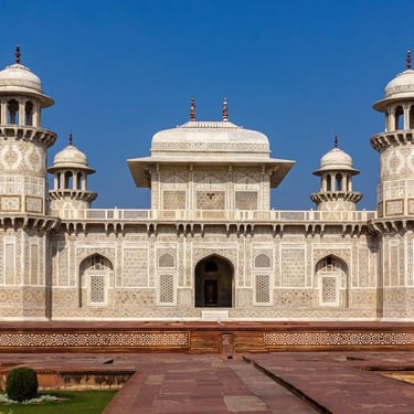 Continue to the exquisite Tomb of I'timad-ud-Daulah, often called the “Baby Taj.” Admire its delicate Pietra dura inlay work — the artistic precursor to later Mughal masterpieces.
