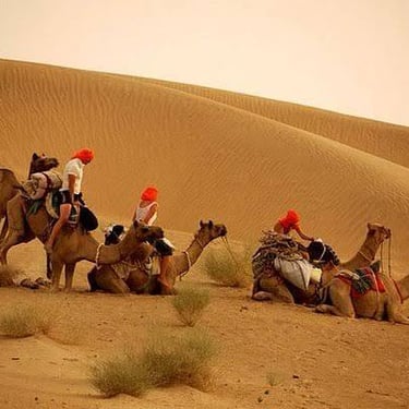 Fly to Jaisalmer. Visit the Golden Fort and historic havelis. In the afternoon, proceed to the Thar Desert for a luxury desert camp experience with camel rides, cultural performances, and a royal-style dinner under the stars.